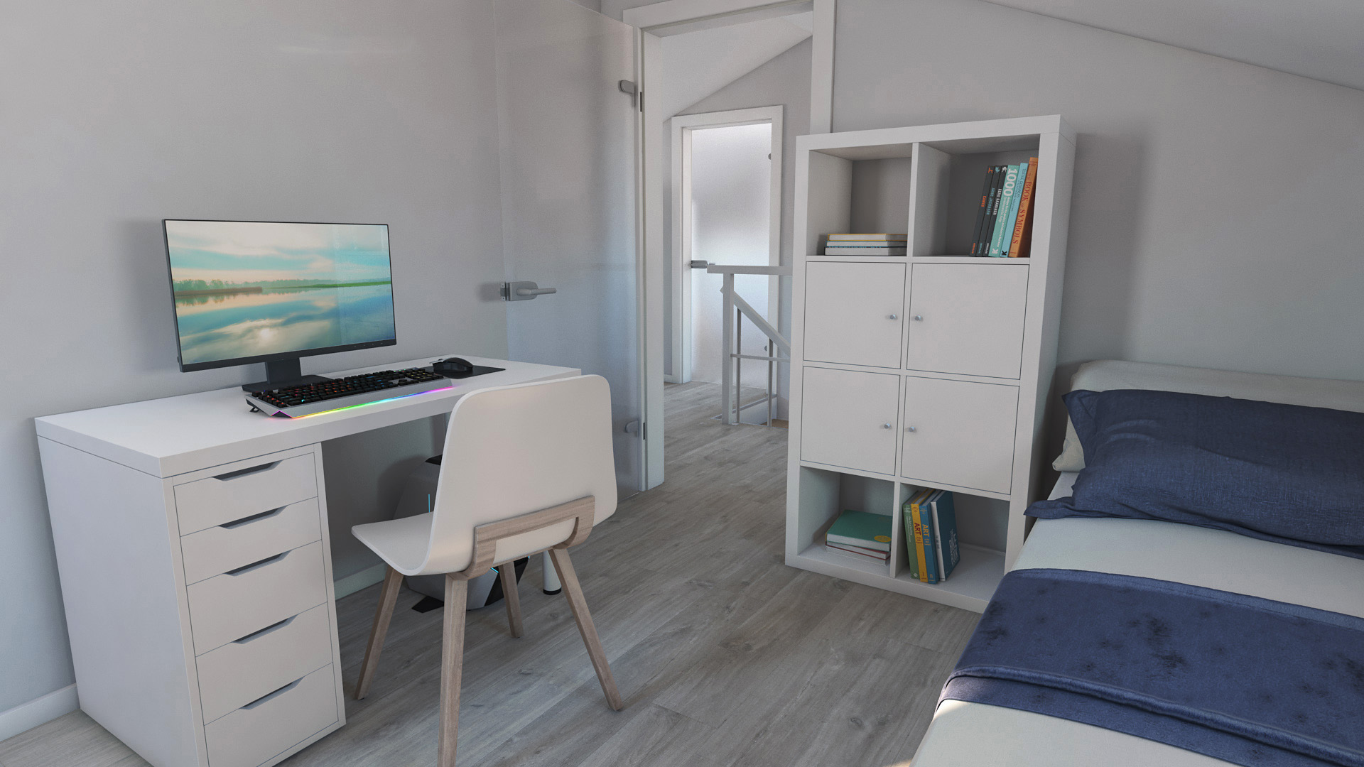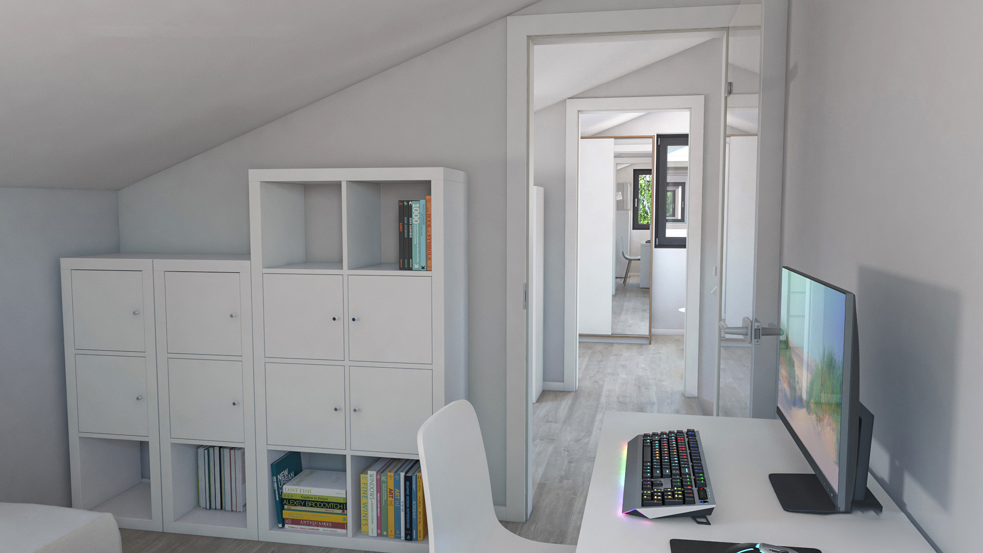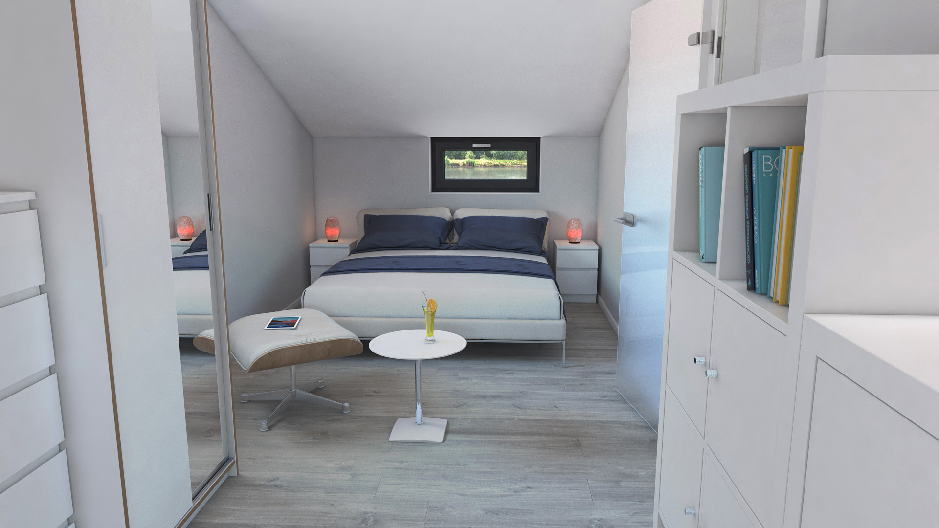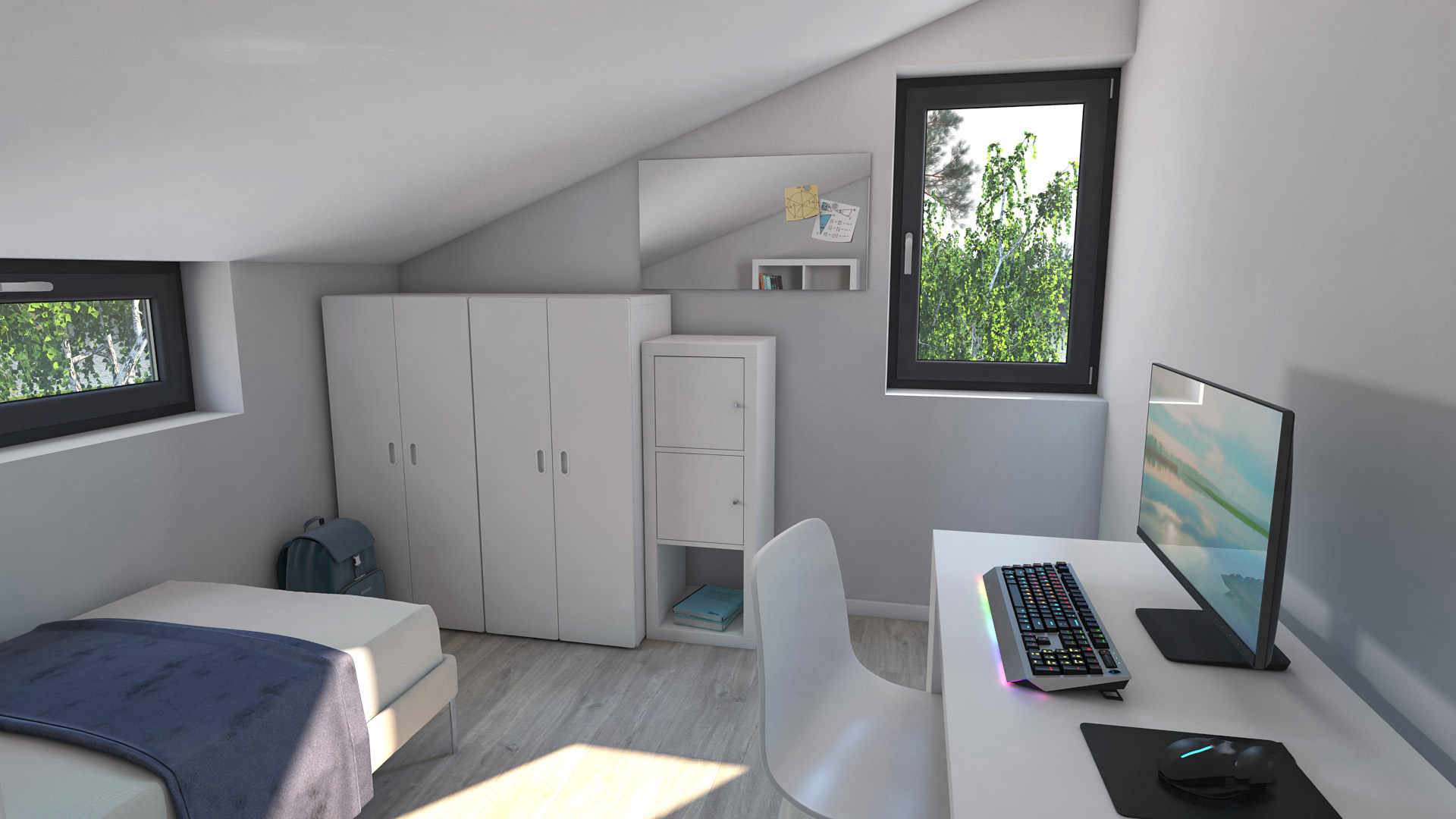 Das Haus ist so konstruiert, dass im nächsten Schritt standardmäßig die Elektro-/Wasser-Installationen und Trennwände eingebaut sowie der Oberputz aufgetragen werden können.