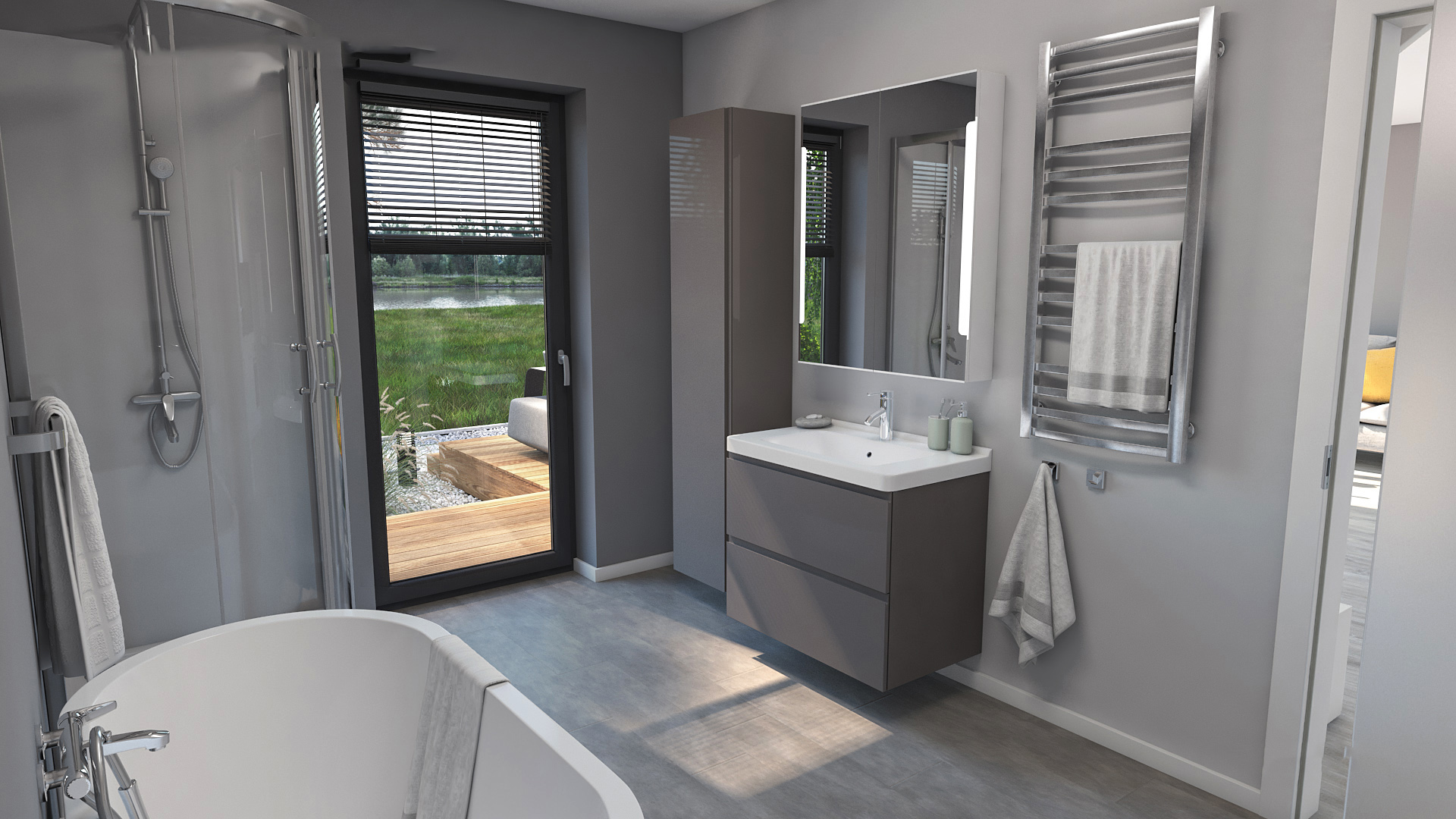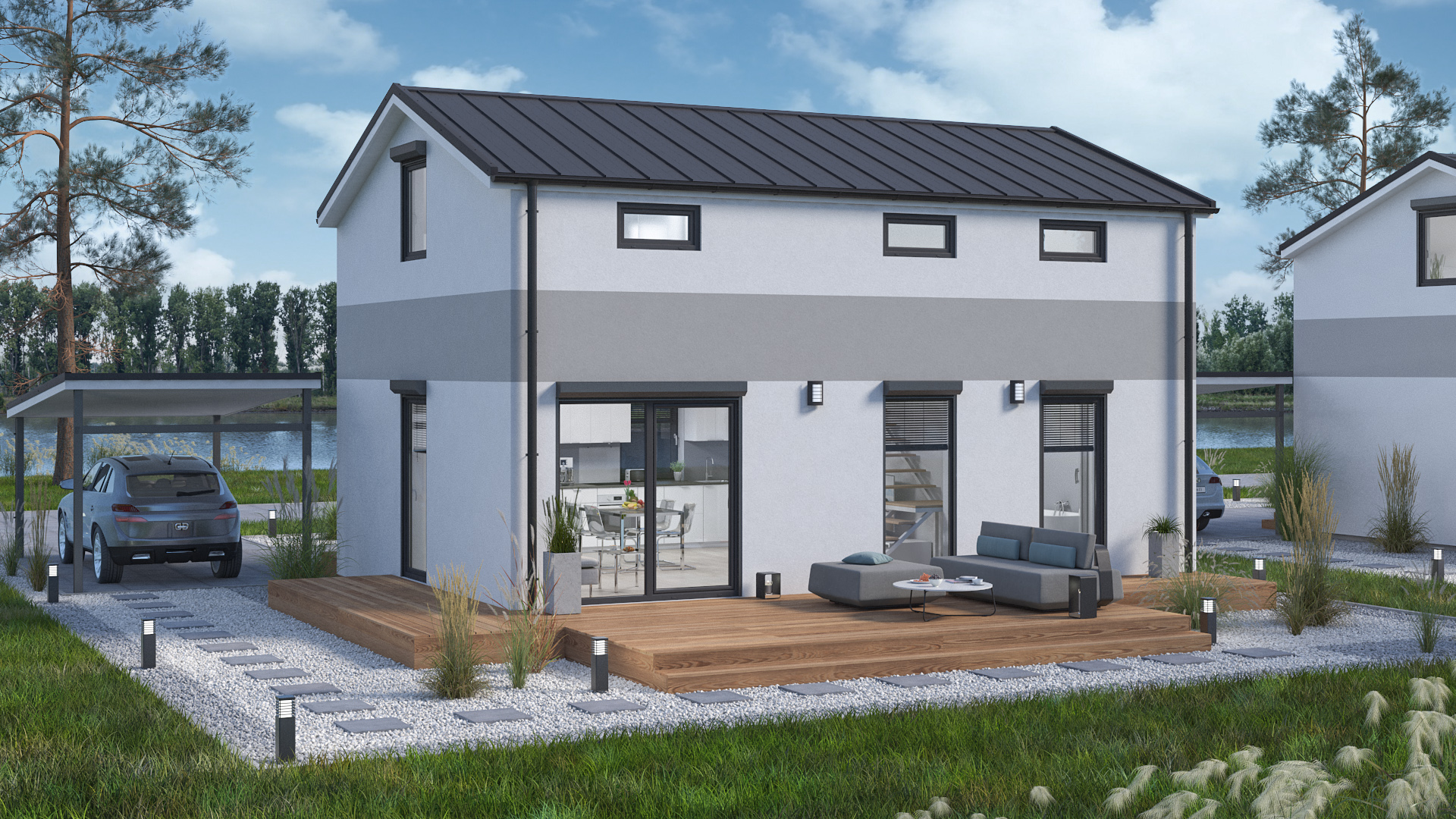 Fenster: Standard PVC Dreischeiben außen Anthrazit /innen weiß (U = 0,83 W/m2K)
